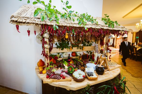 Dysponujemy własnym, profesjonalnym zapleczem kuchennym oraz wykwalifikowaną, sprawdzoną kadrą, co umożliwia przygotowywanie świeżych dań. Posiłki podawane są bezpośrednio na stoły ( na półmiskach). Dodatkowo ustawiony jest „Stół kawowy”. Zawsze przedstawiamy propozycję Menu, które w zależności od potrzeb i oczekiwań modyfikujemy.